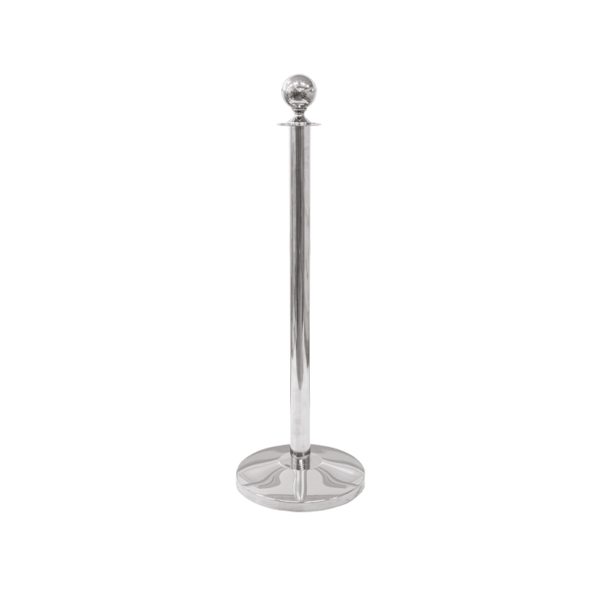 Abgränzungssäule aus verchromtem Metall, Ø 32 x h 100 cm, auch für den Außenbereich geeignet