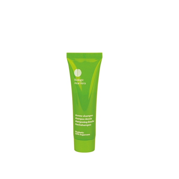 GreenLeaf, Shampoo Duschgel, Duft Aloe Vera, 30 ml, dermatologisch getestet, Formel mit pflanzlichen Tensiden, Tube aus Bioplastik aus Zuckerrohr 100% recycelbar, Made in Italy, Karton zu 350 Stück
