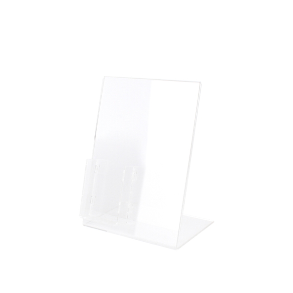 Hinweishalter im A5 Format aus transparentem Acryl, mit Halterung für die Fernbedienung, maximale breite der Fernbedienung 7 cm, 22 x h 32,5 cm