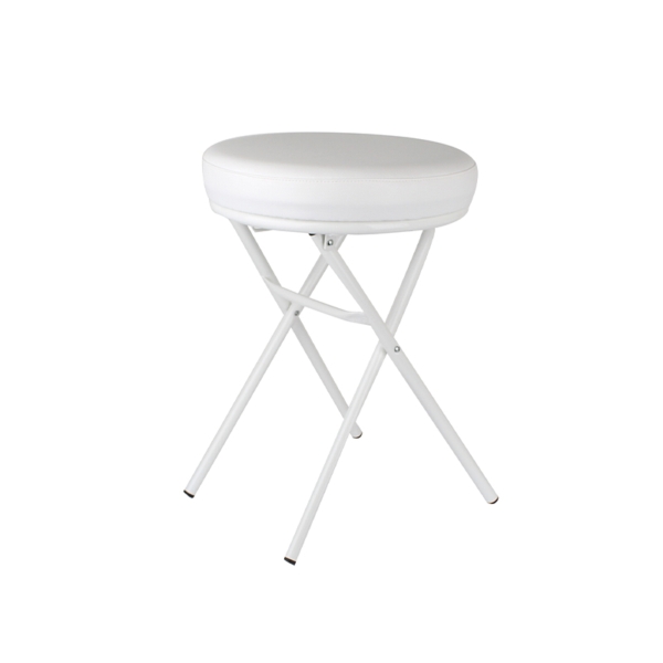 Klappbarer Badehocker mit weißem Metall und weißem Kunstleder – Ø36xh49cm | Amonn