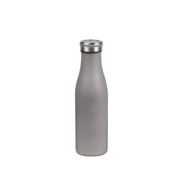 Trinkflasche aus Edelstahl, Farbe Grau, Ø 6,8 x h 23 cm, Kapazität 500 ml, termische Flasche, schnell zu öffnen, 100% luftdichter Verschluss, behält oder verleiht keinen Geschmack, für alle Getränke, Karton zu 10 Stk