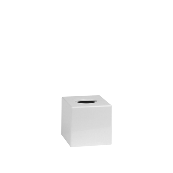 Würfelförmiger Kleenexhalter aus weiß glänzendem ABS, freistehend, 12 x 12,5 x h 12,5 cm