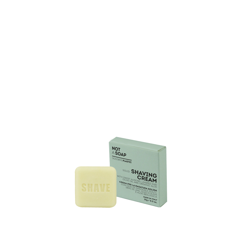Cosmetic 3.0, Solid shaving cream, fragrance with sweet almond oil, linseed, olive oil and aloe, 15 gr, 100% recyclable cardboard, Made in Italy, 420 pcs per box