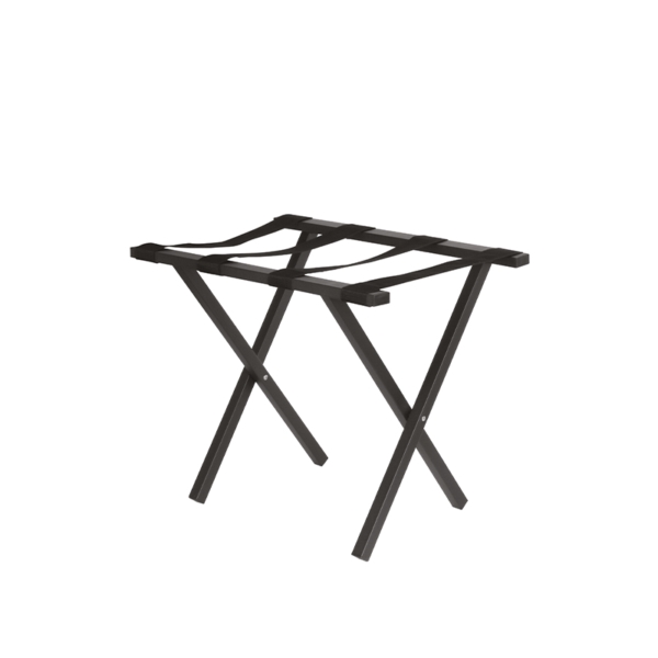 Foldable luggage rack, in black metal, with straps in black PVC, 64 x 43 x h 51 cm