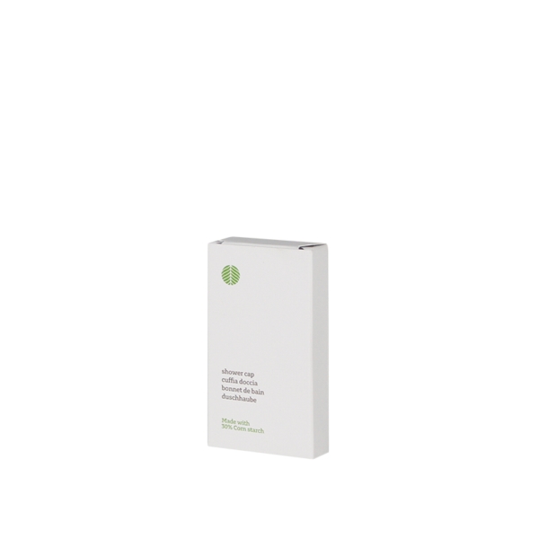 GreenLeaf, Shower Cap in cardboard box, 100% recyclable cardboard, disposable, 30% corn starch cap, 4.5 x 1.5 x h 8.5 cm, 200 pcs per box