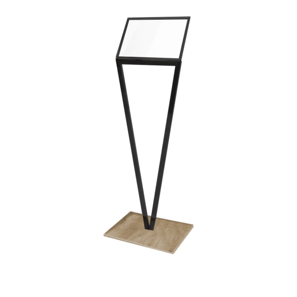 Information display in anthracite painted stainless steel and natural wooden base, with inclined display, Steel Line collection, 50 x 37 x h 140 cm
