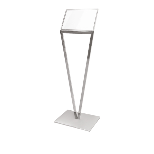 Information display in satin stainless steel, with inclined display, Steel Line collection, 50 x 37 x h 140 cm
