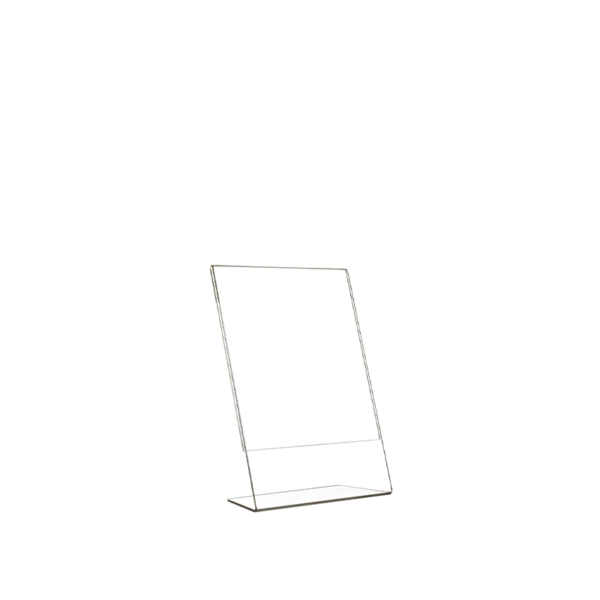 Information display in transparent plexiglass, L-shape base, in vertical A3 format, 100% recyclable plastic