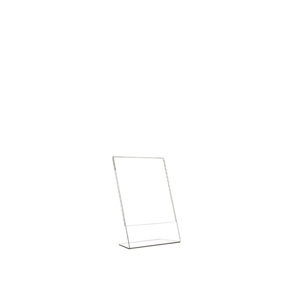 Information display in transparent plexiglass, L-shape base, in vertical A4 format, 100% recyclable plastic
