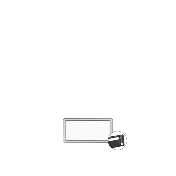 Name tag in matt silver metal with magnet, 6,9 x h 3,4 cm, 20 pcs per box
