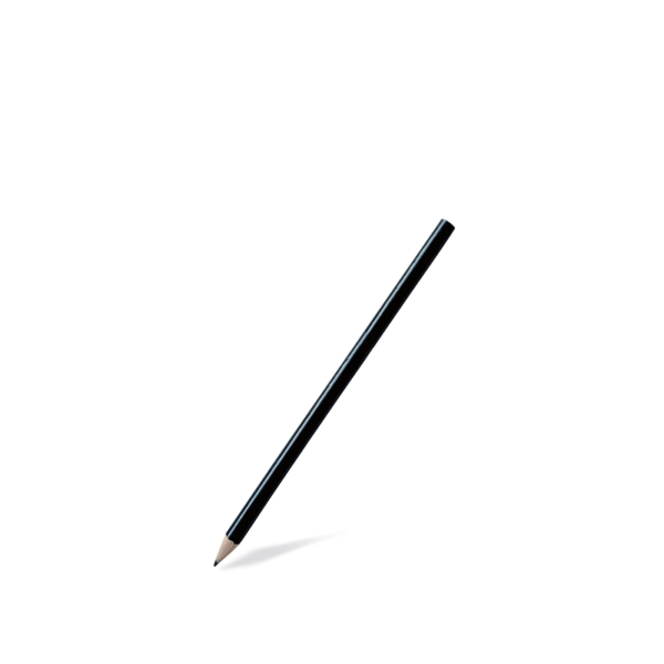 Round pencil in natural linden wood, outside colour black, without eraser, 18 cm, 100 pcs per box