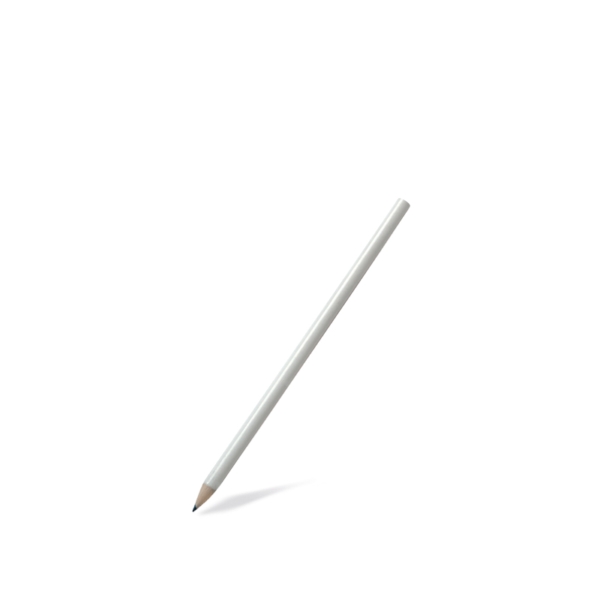 Round pencil in natural linden wood, outside colour white, without eraser, 18 cm, 100 pcs per box