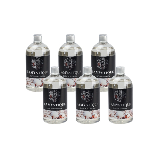 Packaging of 6 refills for room diffuser, Cotton flowers fragrance, 500 ml