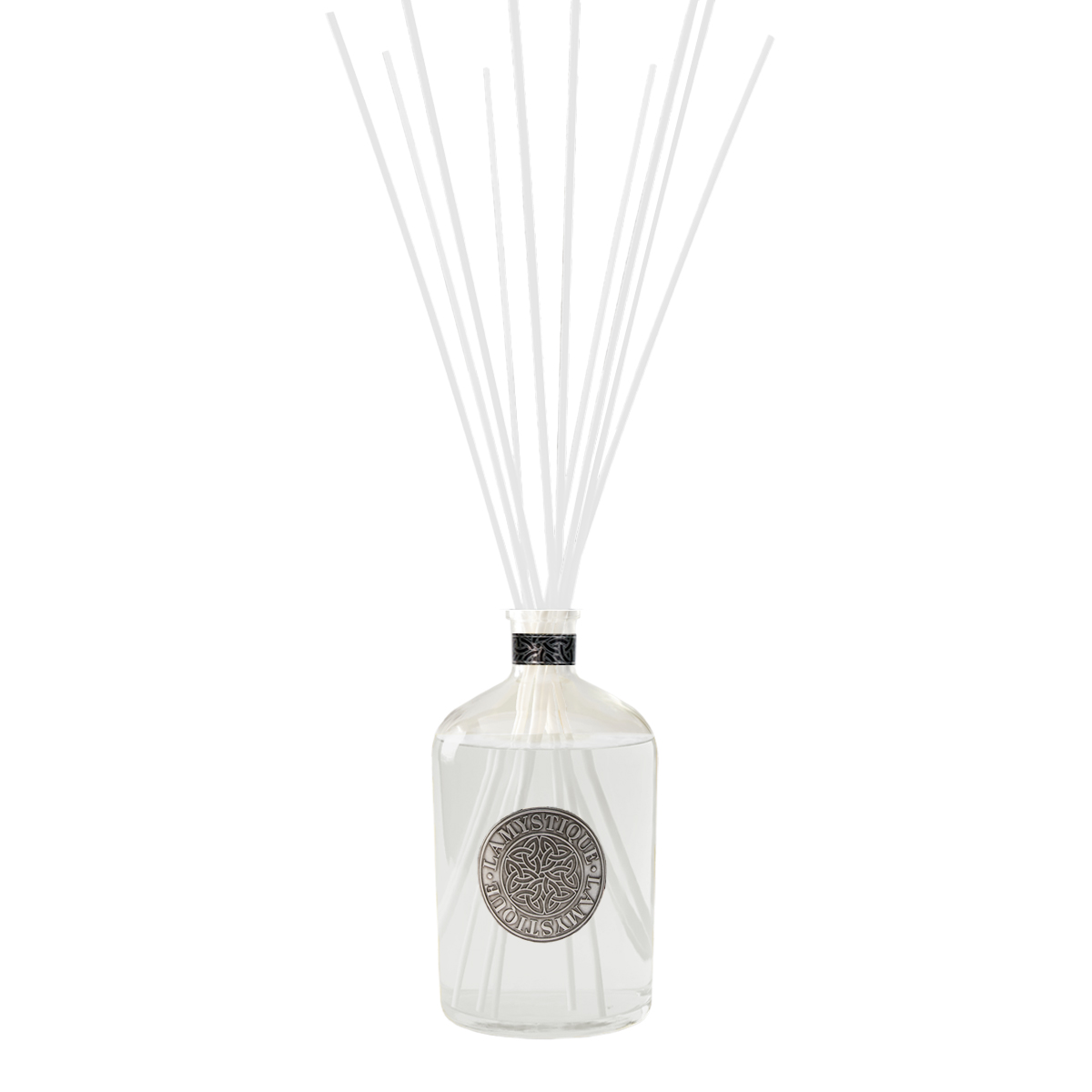 Room diffuser, transparent glasss and white scent sticks in synthetic fiber, Cotton Flowers fragrance, collection Pure Freshness, 5 L