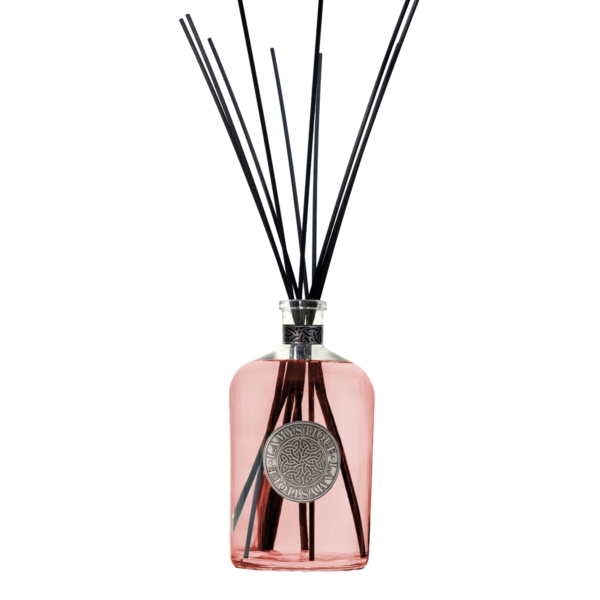 Room diffuser, transparent transparent glasss and black scent sticks in synthetic fiber, Pomegranate & Mango fragrance, collection Sweet Soul, 5 L