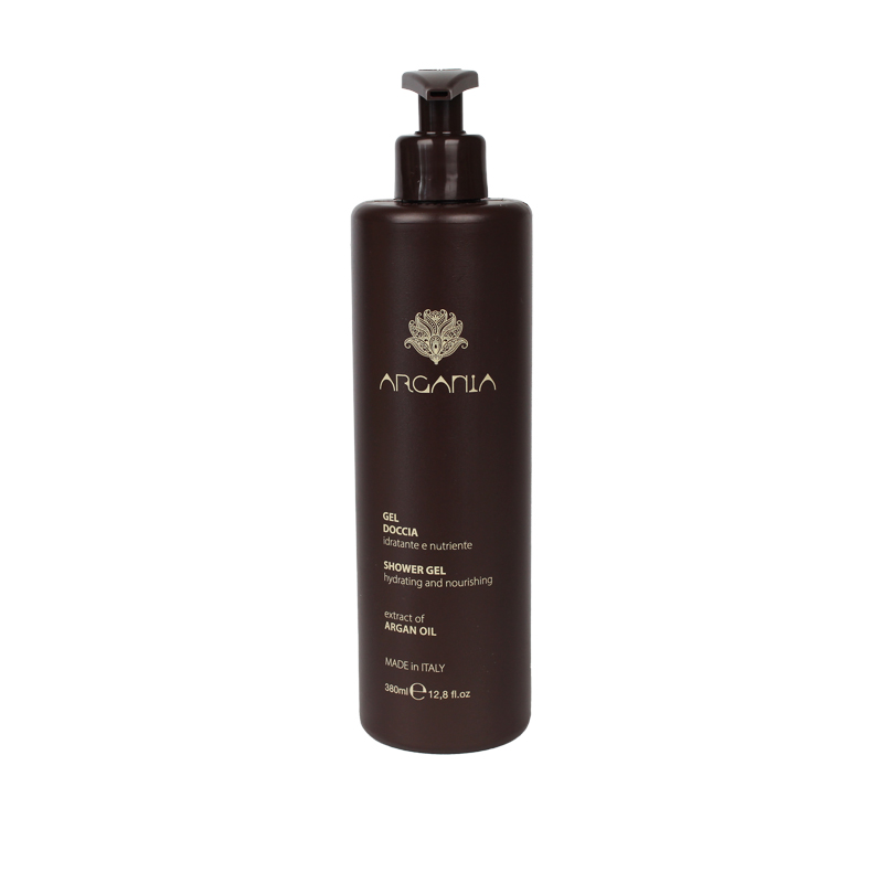 Argania, dispenser Artem®, Gel doccia, fragranza estratto d’olio d’Argan, Made in Italy, 100% derivato da plastica riciclata e riciclabile, no-refill (igiene e sicurezza assoluta), indicatore laterale del liquido interno, 380 ml, supporto NON incluso (ARTSUPN o ARTSUPB), confezione da 18 pz