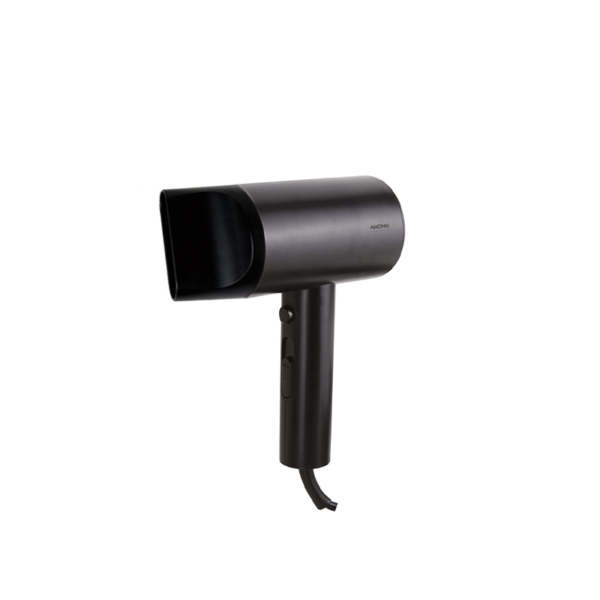 Asciugacapelli compatto color nero, tasto di regolazione: 2 combinazioni di temperatura dell’aria calda, 1 combinazione di temperatura dell’aria fredda, bocchetta, interruttore di sicurezza, presa Schuko, 1800 W, 17 x h 19,5 cm