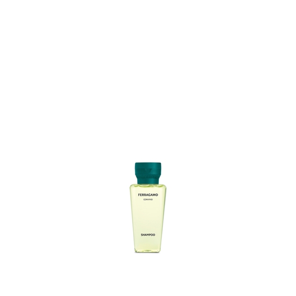 Ferragamo, shampoo, fragranza Convivio, 33 ml, dermatologicamente testato, profumo ispirato al patrimonio culturale italiano, flacone e tappo 100% plastica riciclata e riciclabili, Made in Italy, confezione da 210 pz