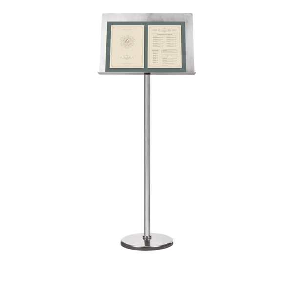 Leggio su piantana in ottone cromato, diam. 32 x h 146 cm, adatto per fogli formato A3, piano inclinato, l’eterno fascino del classico, prodotto artigianale di alta qualità, contraddisitinto da eleganti finiture lucide e da elementi rigati, Made in Italy, collezione Classic