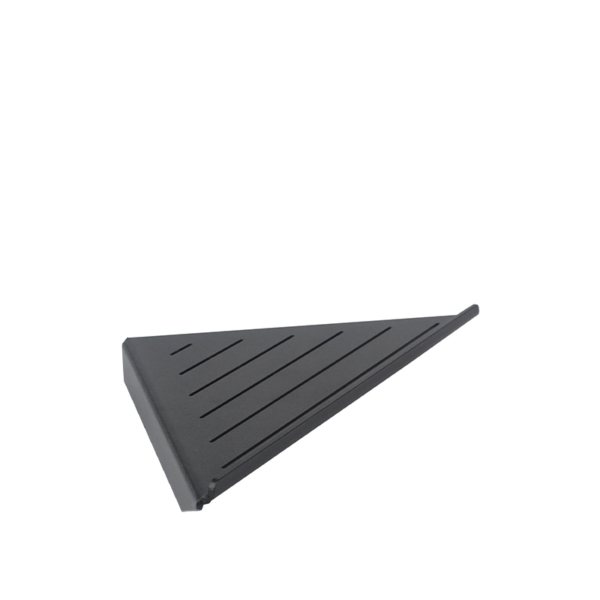 Mansola doccia angolare in alluminio verniciato nero, fissaggio a parete incluso, ripiano dotato di bordo e di fori per la fuoriuscita dell’acqua, 28 x 20 x h 3,5 cm