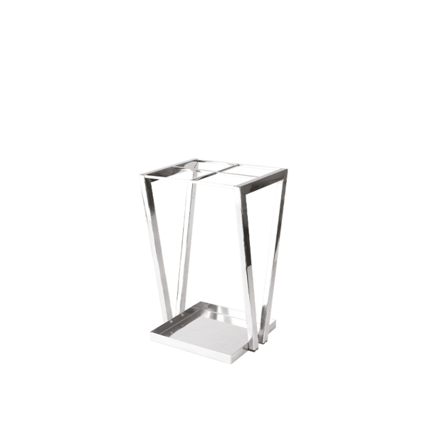 Portaombrelli in acciaio inox satinato, dotato di vaschetta salva goccia estraibile in plexiglass trasparente, 30 x 31,5 x h 55 cm, adatto anche per l’esterno, collezione Steel Line
